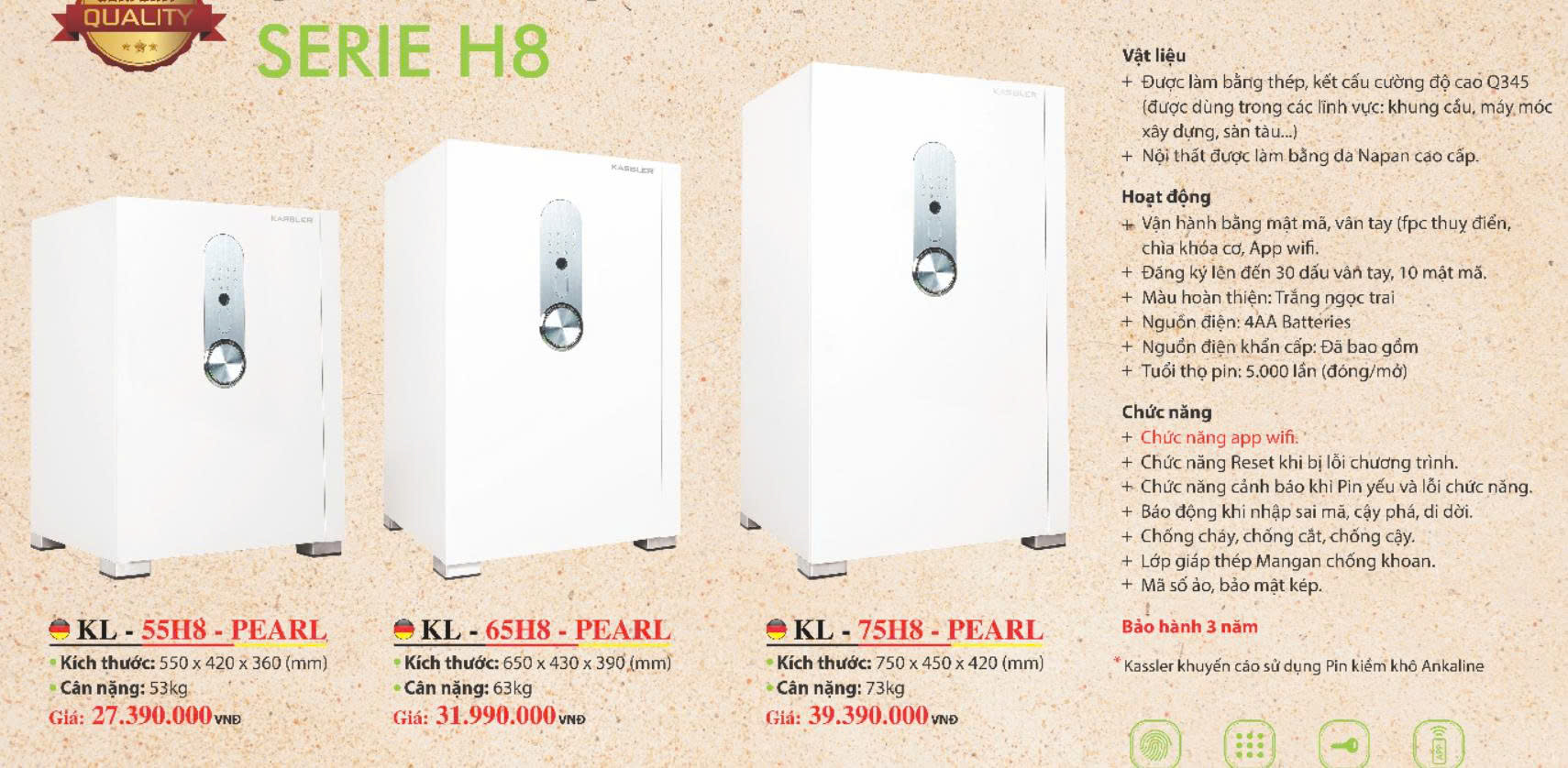 Két Sắt Thông Minh Kassler KL-75H8 Pearl