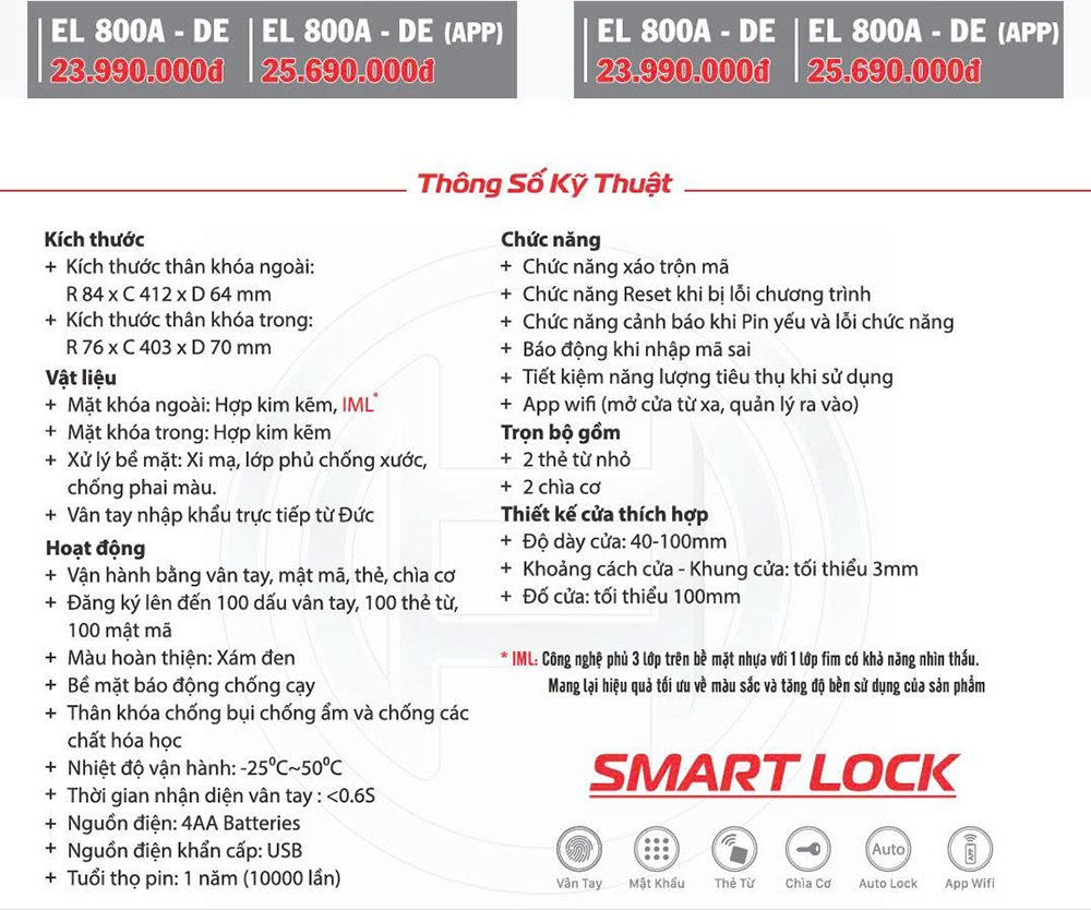 Khác với các dòng Push – Pull cao cấp, EL 800A sử dụng thiết kế tay nắm truyền thống (Lever Handle). Kiểu dáng này không chỉ mang lại cảm giác quen thuộc, dễ thao tác cho mọi lứa tuổi mà còn giúp giảm chi phí sản xuất, đưa sản phẩm tới tay nhiều gia đình hơn. Màu Xám trung tính của phiên bản DE Gray dễ dàng phù hợp với các loại cửa gỗ công nghiệp, cửa thép, mang lại vẻ ngoài gọn gàng và tinh tế.